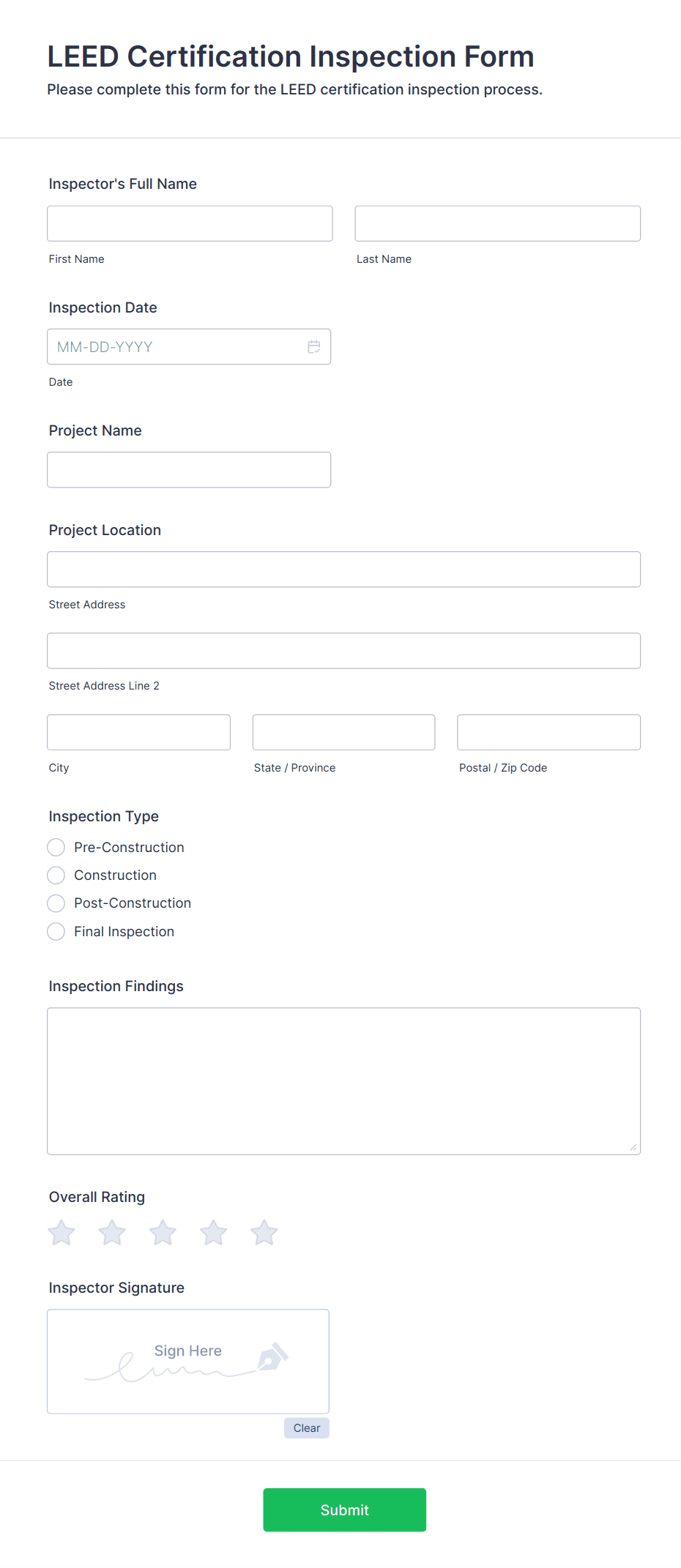 Creating an effective inspection form with Jotform is straightforward and highly customizable, allowing you to address the unique requirements of your inspection process. Whether you’re conducting safety audits, equipment checks, or property walkthroughs, Jotform’s platform ensures your forms are comprehensive, user-friendly, and accessible from any device.