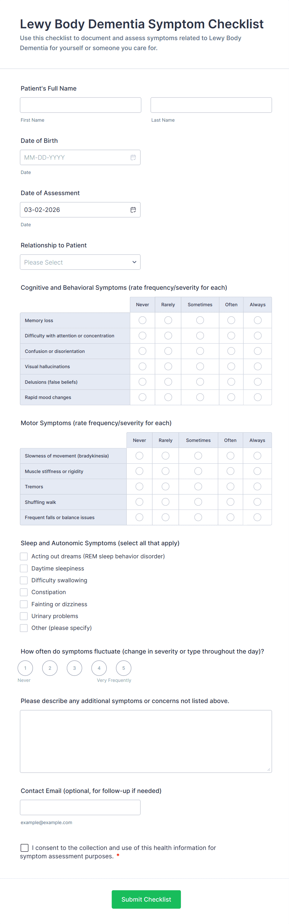 Patient Admission Checklist Form