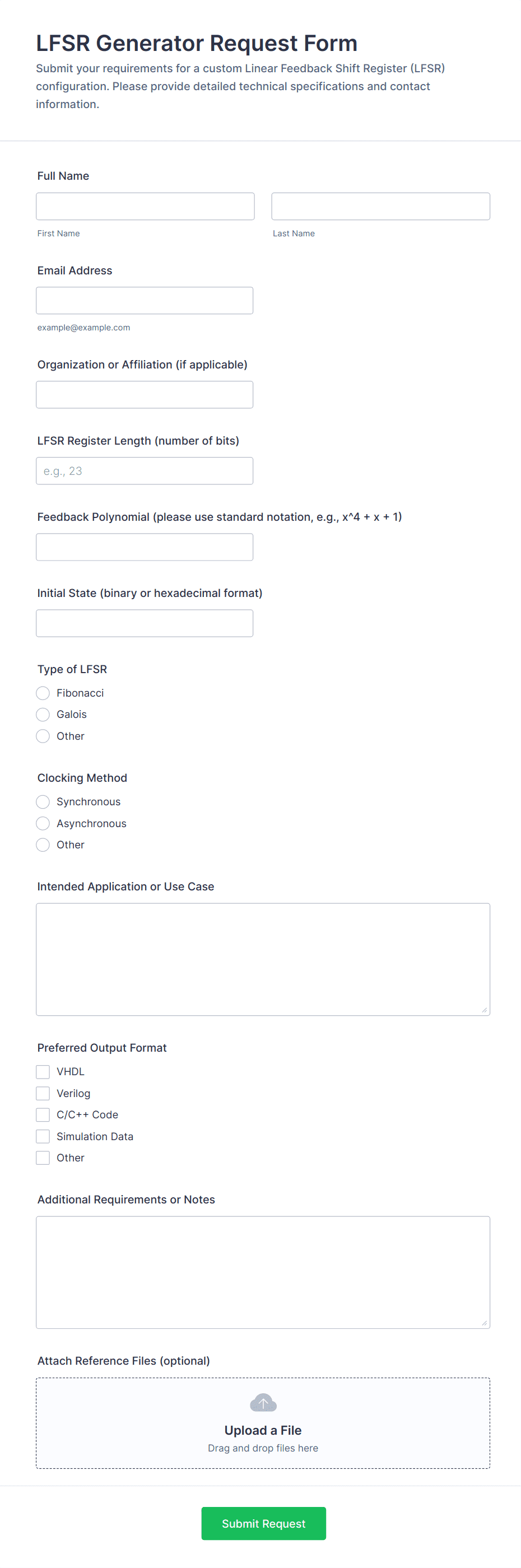 IT Request Forms are digital tools designed to streamline the process of submitting, tracking, and managing requests related to information technology services within an organization. These forms can be used for a wide range of IT needs, such as reporting technical issues, requesting new hardware or software, seeking access to specific systems, or initiating IT support tickets. By providing a standardized way for employees, students, or clients to communicate their IT requirements, these forms help ensure that requests are accurately captured and efficiently routed to the appropriate IT personnel for resolution. Common use cases include onboarding new employees with the necessary tech resources, reporting equipment malfunctions, or requesting software installations and upgrades.