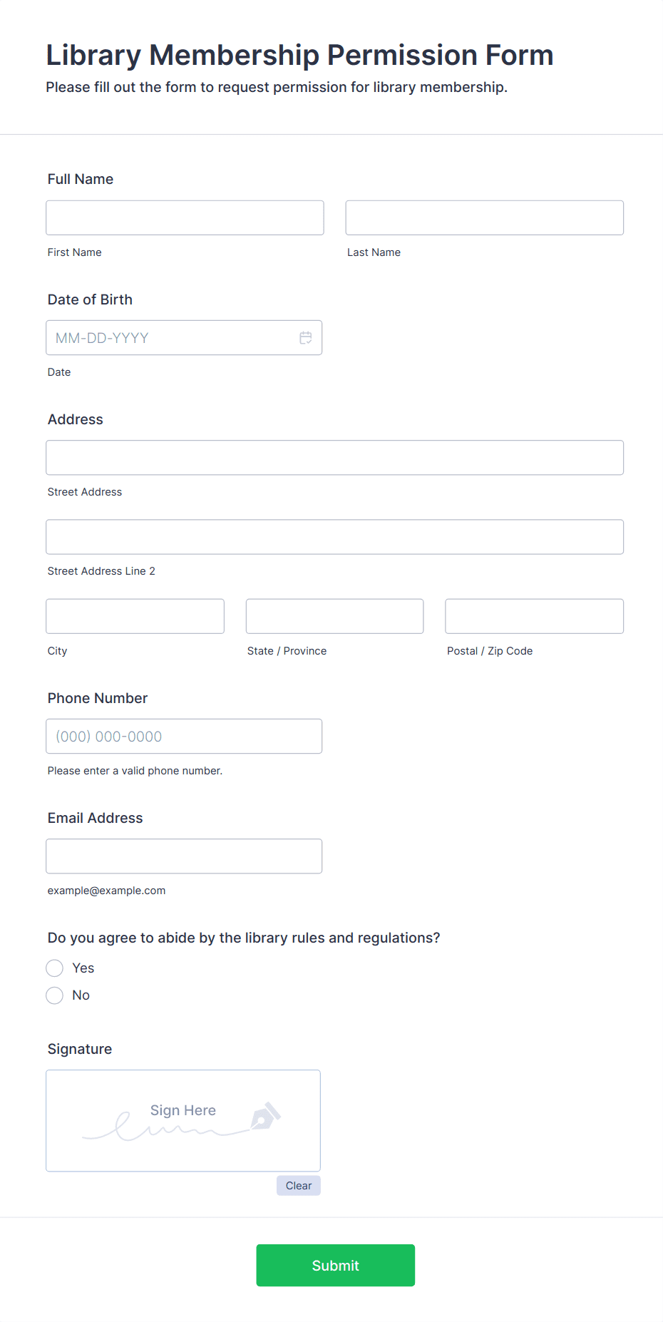 Membership Registration Forms are essential tools for organizations, clubs, associations, gyms, and other groups that require individuals to sign up and become members. These forms are designed to collect vital information from prospective members, such as contact details, membership preferences, payment information, and consent to terms and conditions. Whether you’re managing a professional association, a sports club, a nonprofit, or an online community, membership registration forms streamline the onboarding process, ensure accurate data collection, and help maintain organized member records. Use cases range from annual club sign-ups and event-based memberships to recurring subscription services and exclusive access programs.