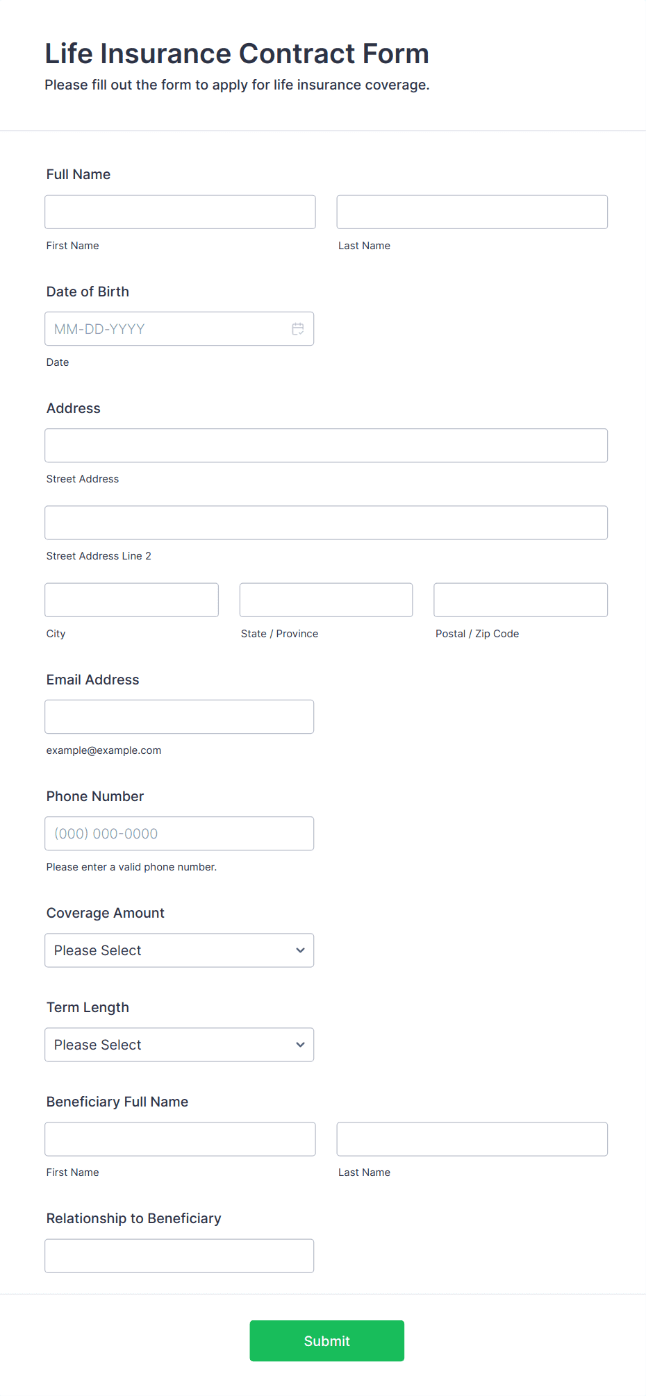 Responsive Life Insurance Quote Form
