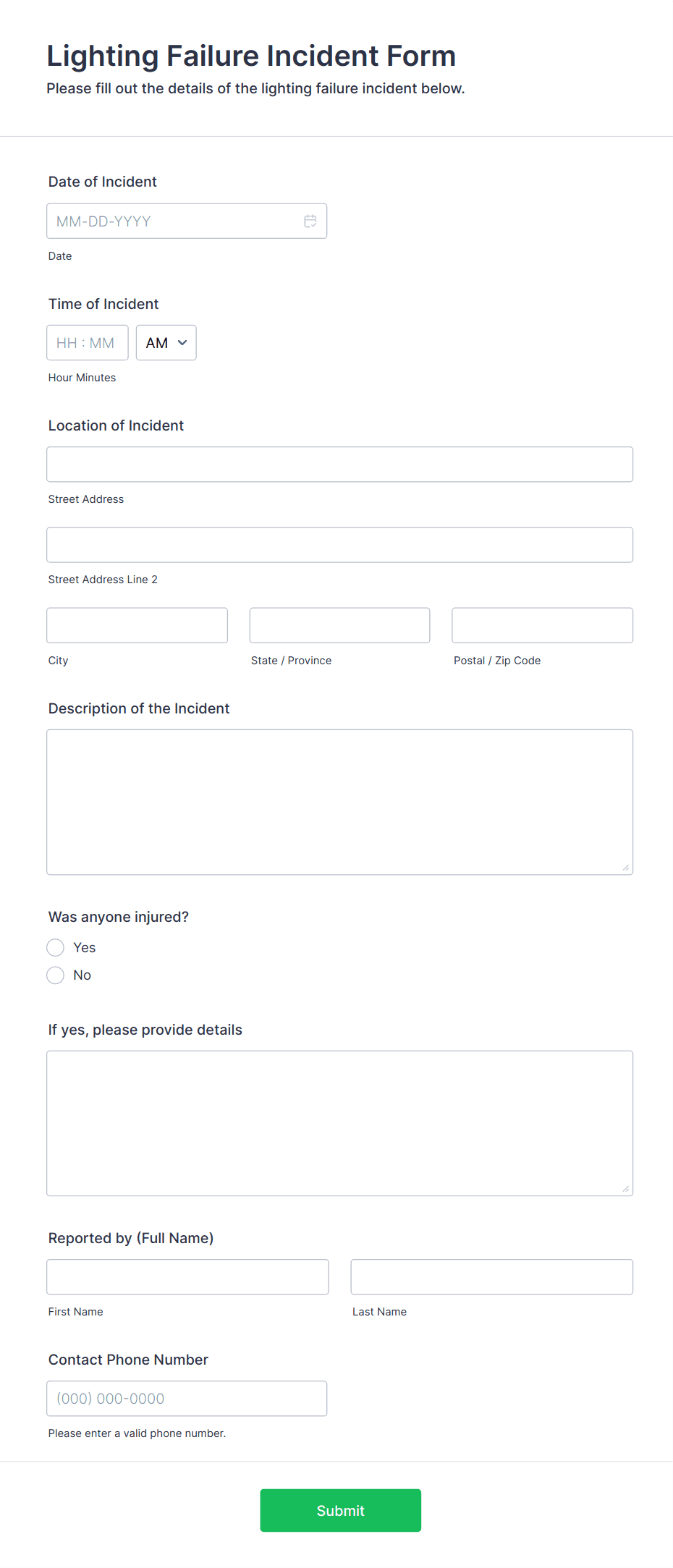 An Incident Report Template is a standardized form used to document details surrounding an incident, accident, or unusual event within an organization or specific context.