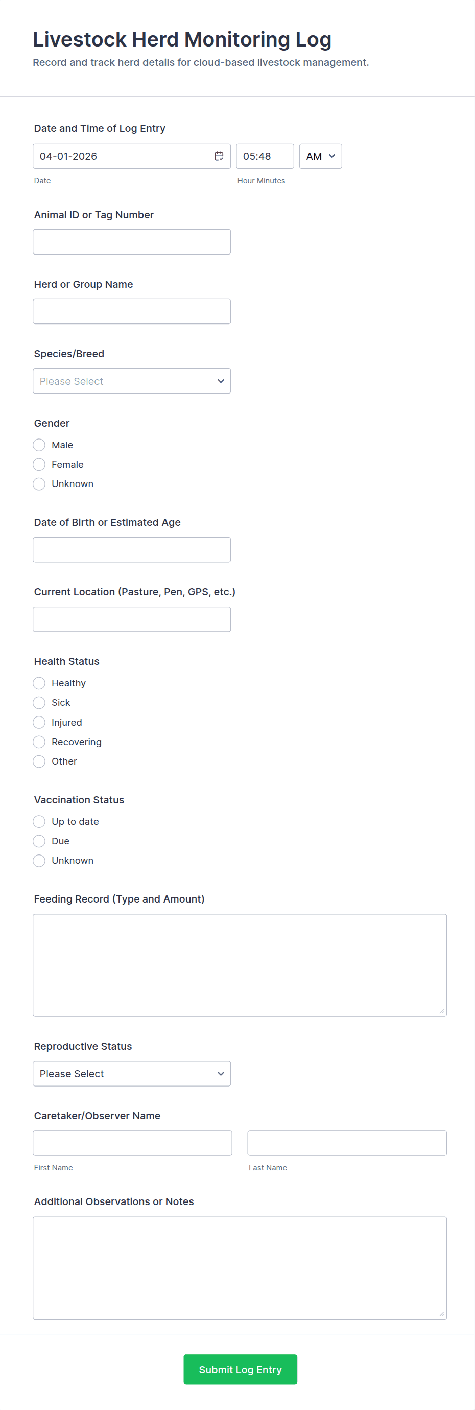 - Environmental Monitoring Forms: Include data entry for measurements, location fields, and observation notes.