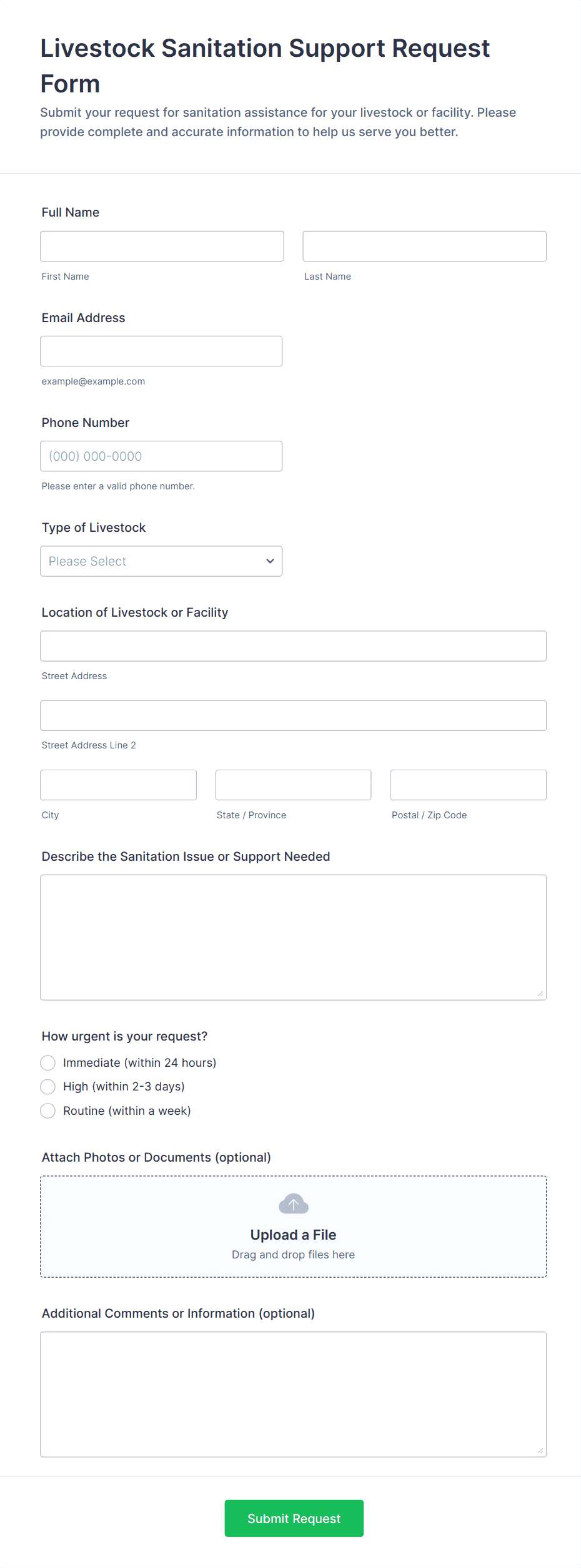 Collect and manage information for your farm with free online Farmer Forms. Whether you’re filling out land lease agreements, selling your products, or collecting worker applications, choose a template below and customize it to perfectly match your needs with our drag-and-drop builder. No coding required! You can then embed your form in your website, share it with a link, or fill it out yourself directly from your smartphone, tablet, or computer. Stop tracking information with pen and paper and upgrade to online Farmer Forms that work great on any device.