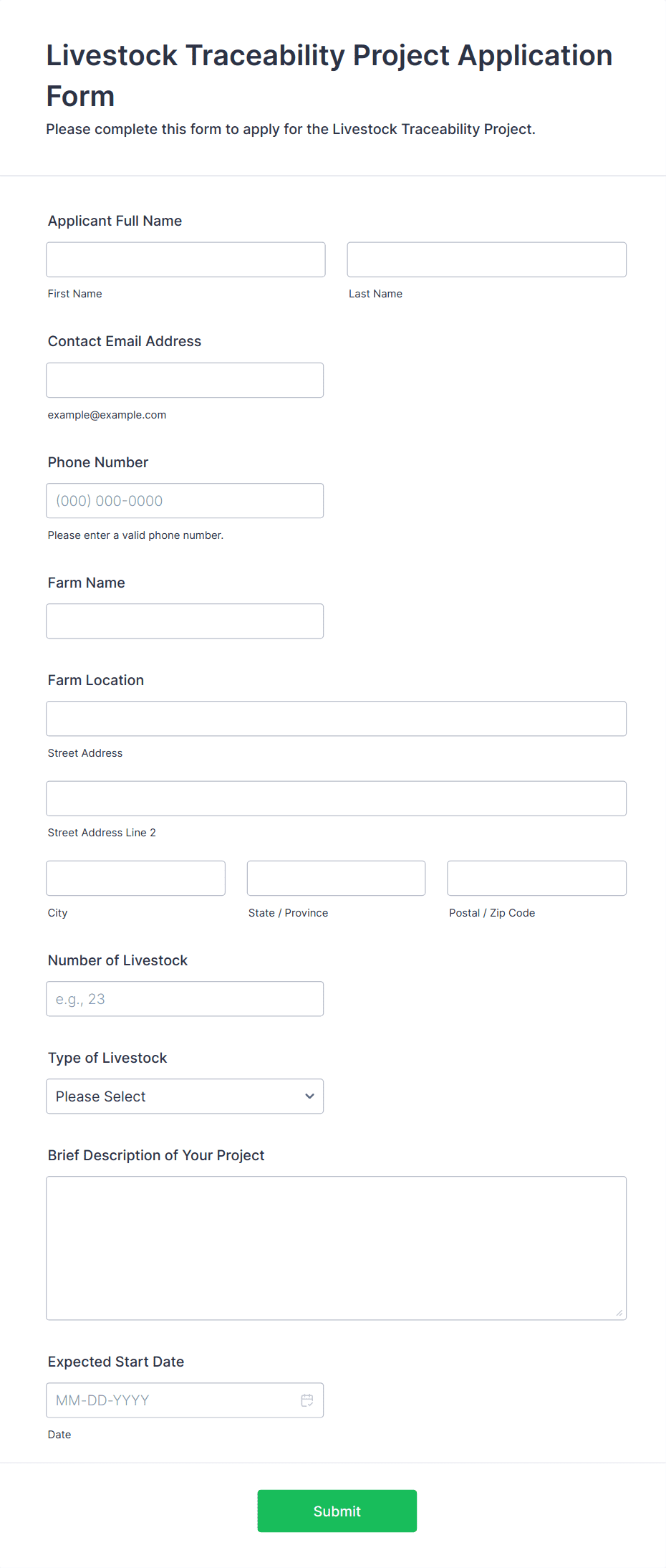 Collect and manage information for your farm with free online Farmer Forms. Whether you’re filling out land lease agreements, selling your products, or collecting worker applications, choose a template below and customize it to perfectly match your needs with our drag-and-drop builder. No coding required! You can then embed your form in your website, share it with a link, or fill it out yourself directly from your smartphone, tablet, or computer. Stop tracking information with pen and paper and upgrade to online Farmer Forms that work great on any device.