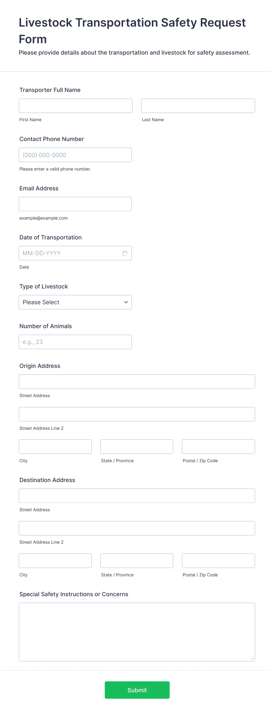 The form templates here are for informational purposes only. Jotform is not providing legal, financial, or other advice, or implying that the forms are legally valid in all or any jurisdictions. Before using any such form, consult an attorney and/or other applicable professionals to make sure that the form meets your needs, legally and otherwise.