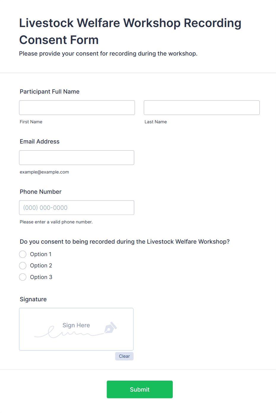 Get permission from parents and guardians to let their children participate in your program. Free parental consent form. Easy to customize and embed. No coding required.