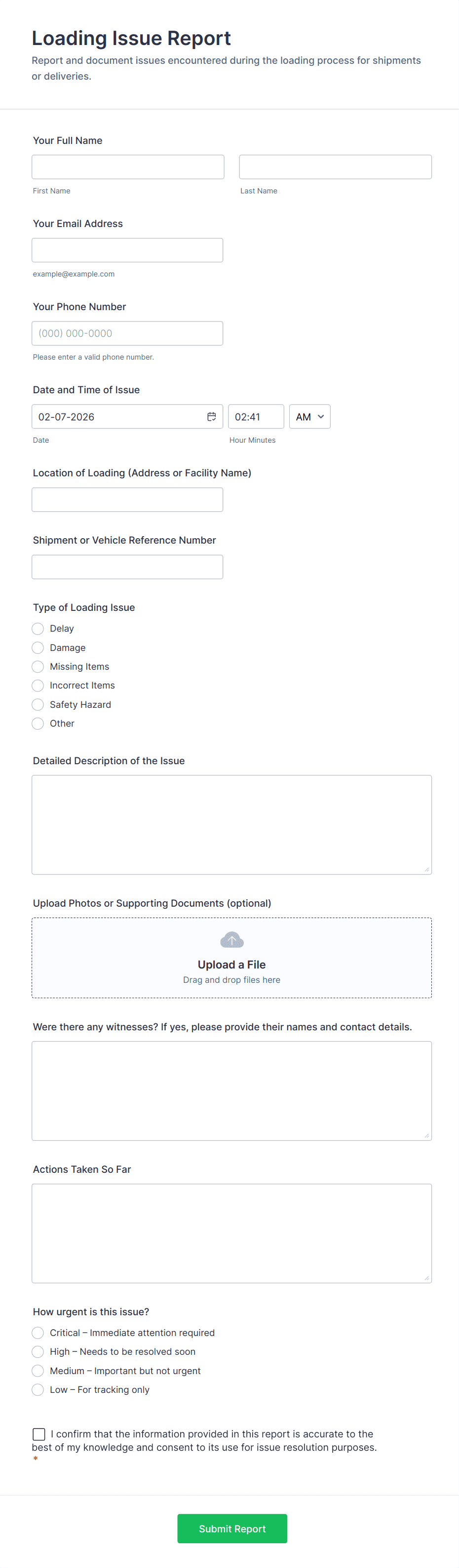 Warehouse Incident Report Form