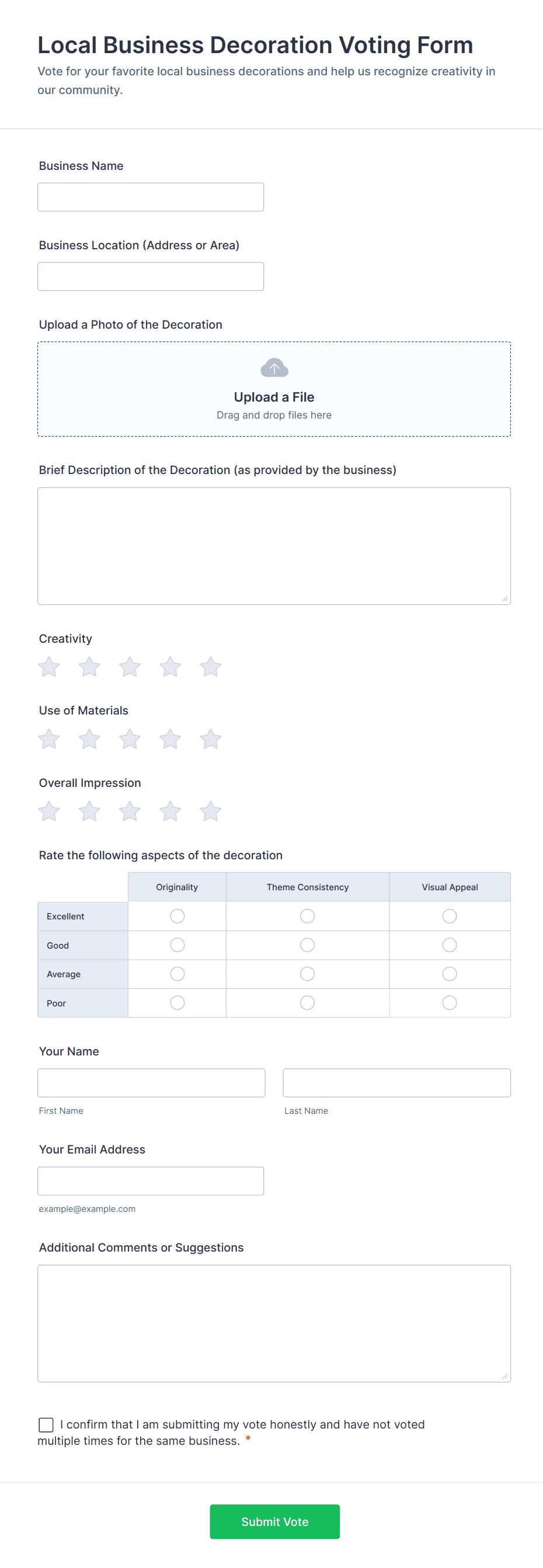 By following these steps, you can create a tailored voting form that meets your specific needs, ensures data integrity, and provides a seamless experience for all participants.