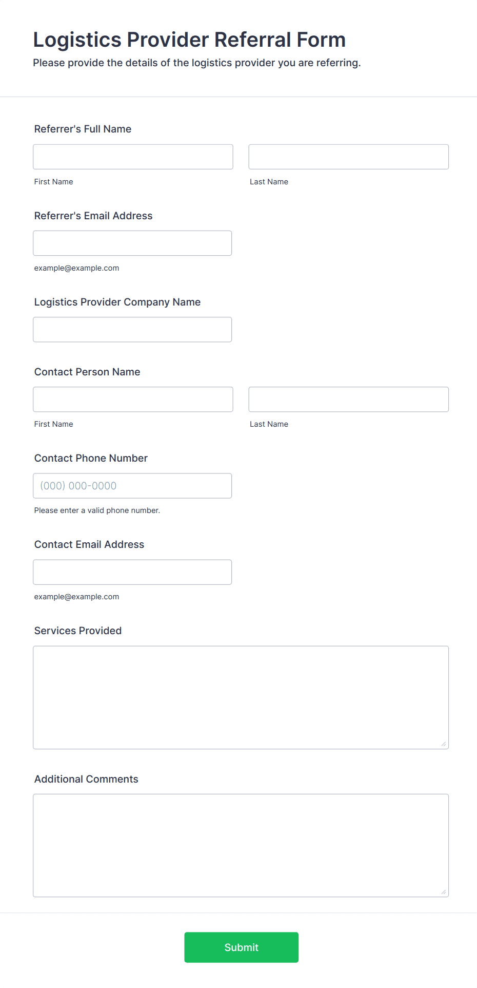 • For healthcare or sensitive referrals, include fields for privacy agreements or HIPAA compliance.