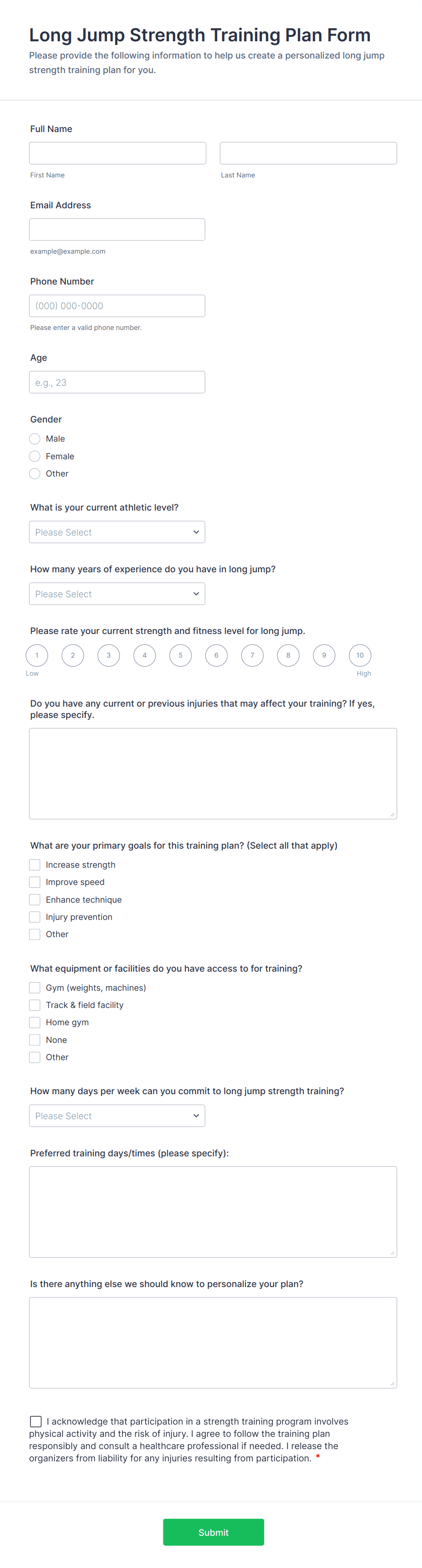 Sports form templates are suitable for league administrators, coaches, event organizers, school athletic departments, fitness instructors, and volunteers.
