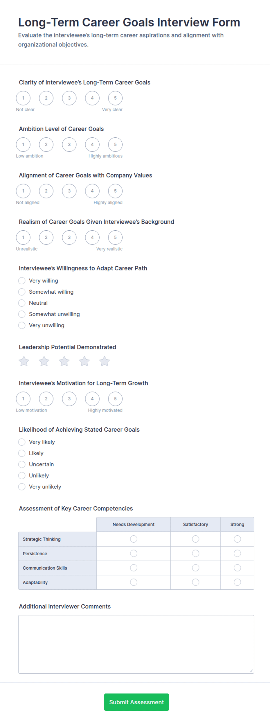 Interview forms are specialized documents or digital tools designed to streamline the process of gathering information from candidates, clients, or stakeholders during interviews. These forms can be used in a variety of settings, such as job interviews, academic research, client intake sessions, or even exit interviews. By standardizing the questions and response formats, interview forms help ensure consistency, fairness, and efficiency in the data collection process. They can include a mix of question types, such as multiple choice, open-ended, rating scales, and more, tailored to the specific goals of the interview.
