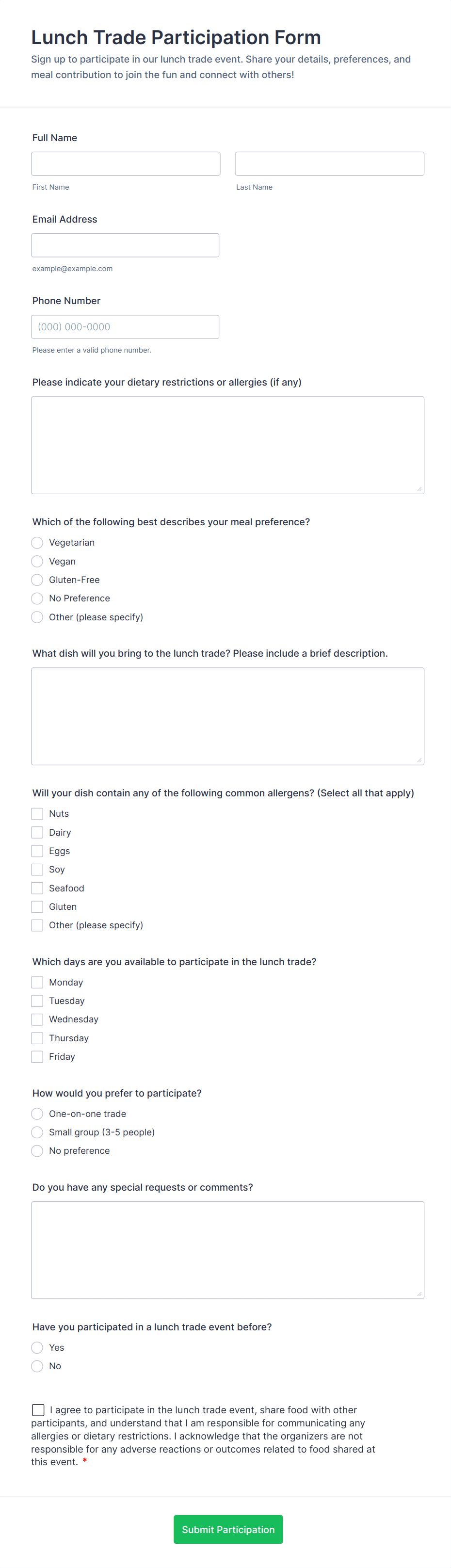 3. What information should be included in an event registration form?