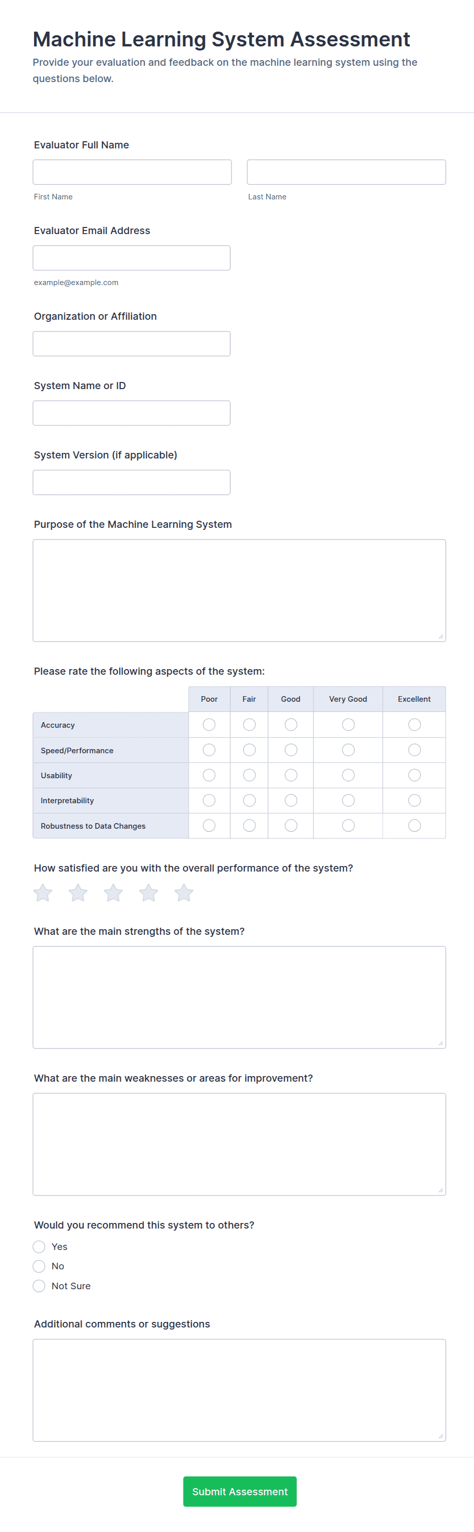 By following these steps, you can create a tailored assessment form that meets your specific needs, streamlines data collection, and provides actionable insights for your organization or project.