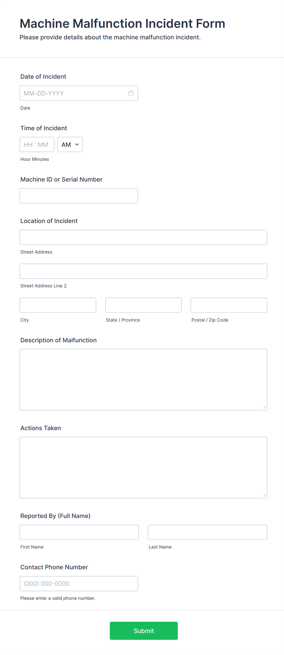 An Incident Report Template is a standardized form used to document details surrounding an incident, accident, or unusual event within an organization or specific context.