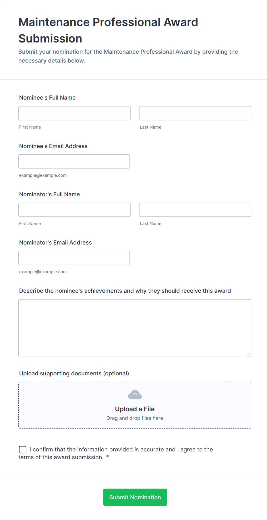 Do you plan to provide awards in your industry or organization? This form will help you get nominations easily.