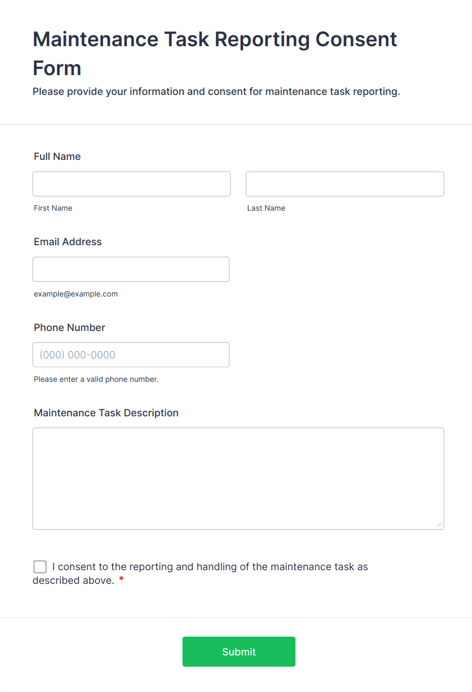 A maintenance request form is used by both property owners and building managers to identify maintenance issues and submit service requests. Easy to use. No coding.