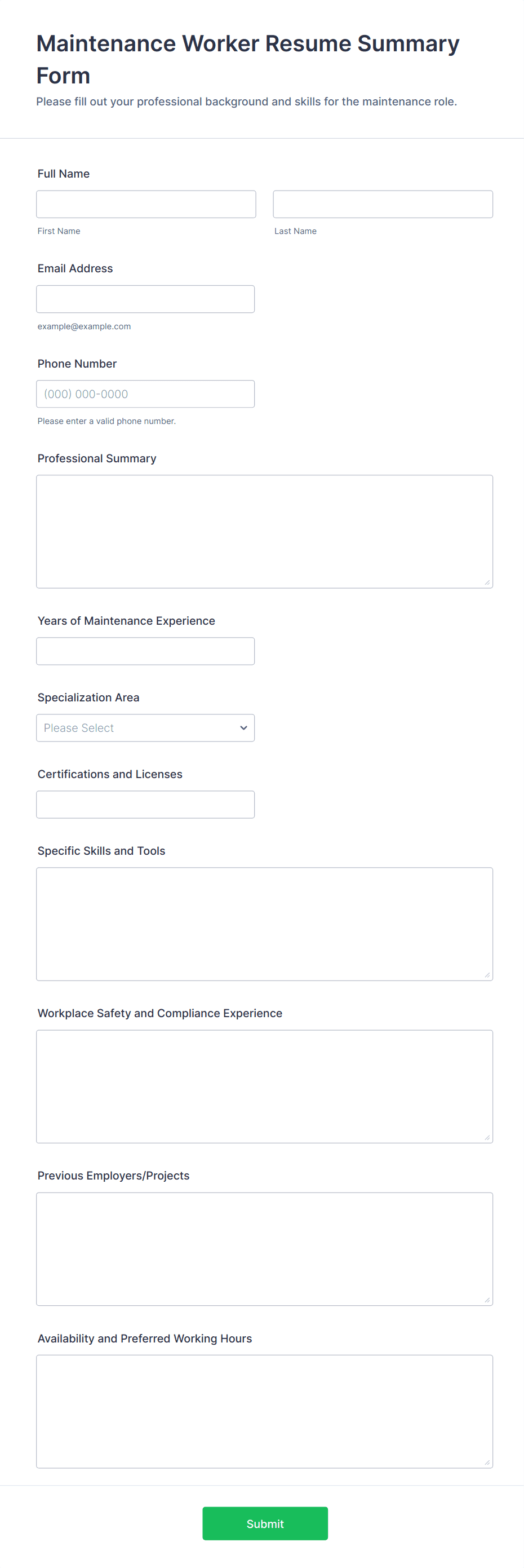 • For Job Applications: Name, contact info, education, work history, resume upload, screening questions.