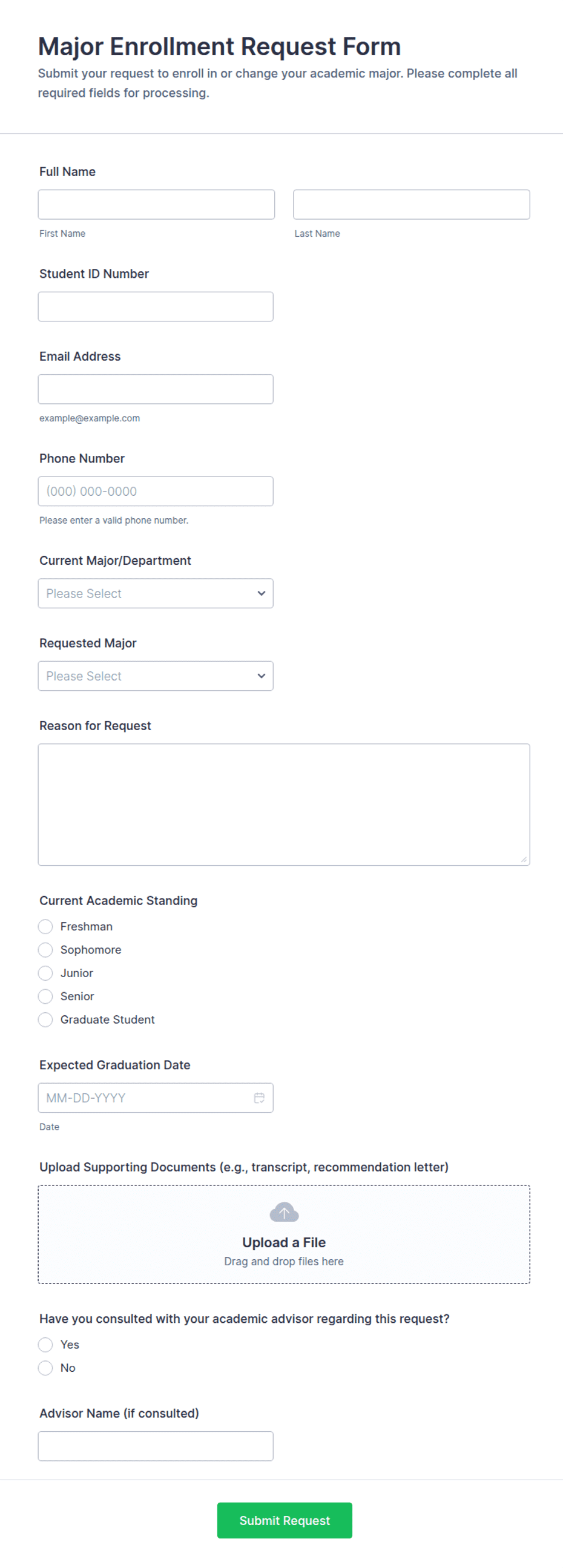 - For specialized use cases, include fields for document uploads (e.g., transcripts, immunization records) or payment collection (for tuition or registration fees).