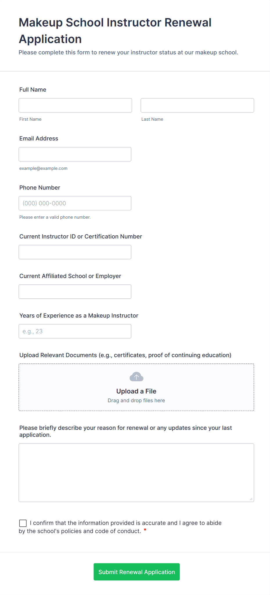 3. What information should be included in a makeup form?