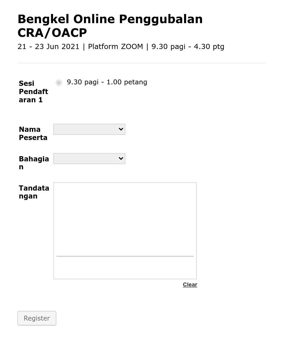 Form are used to register multiple participants for the event. Registration form content are contact details of the individual participants, Dietary concerns and others notes or suggestion.