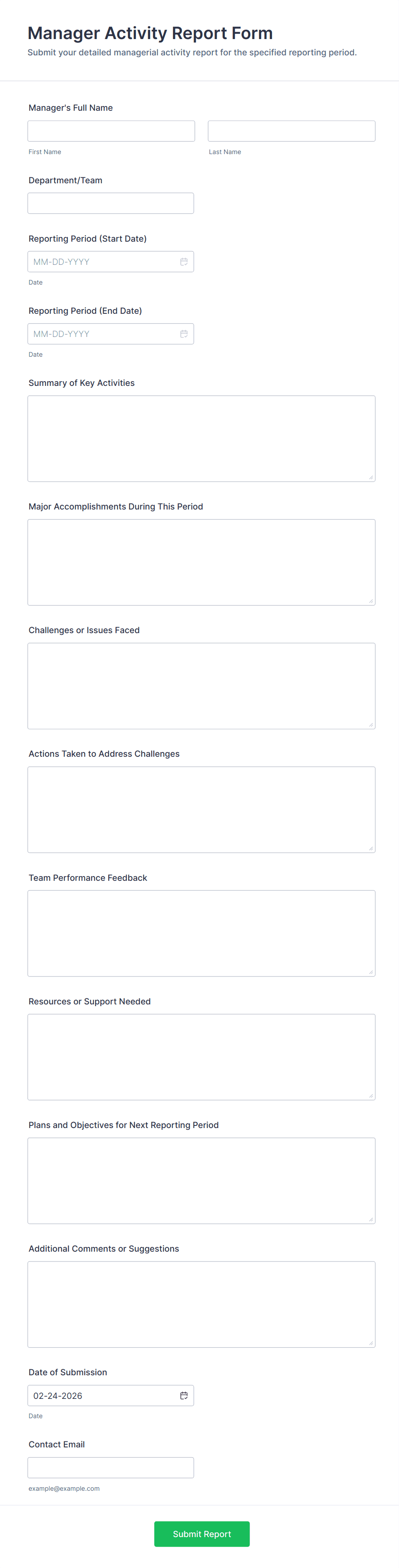 Business report forms are versatile and can be adapted to a variety of organizational needs. Their primary function is to facilitate structured data collection and reporting, but the specifics can vary widely depending on the context. Here’s how they can be used, who might use them, and how their creation can differ: