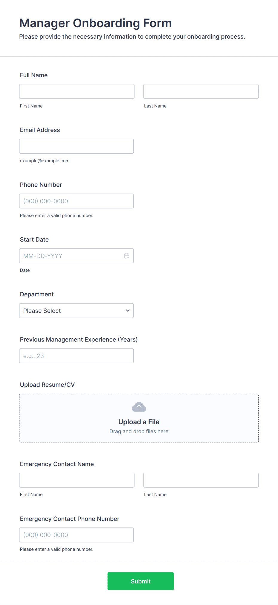 An online job application form is a website form used to collect information about job candidates.