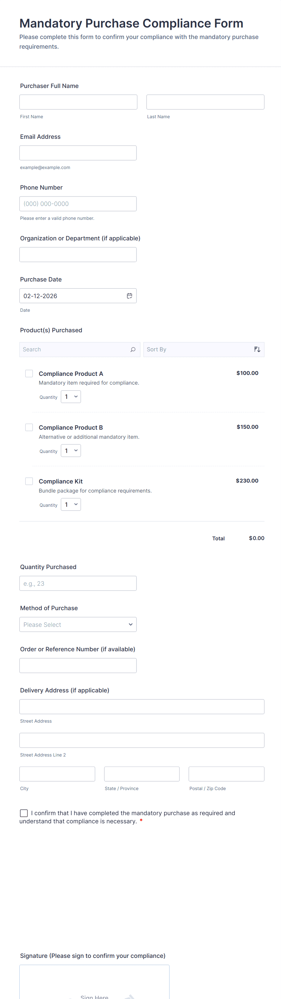 Online Product Purchase Form