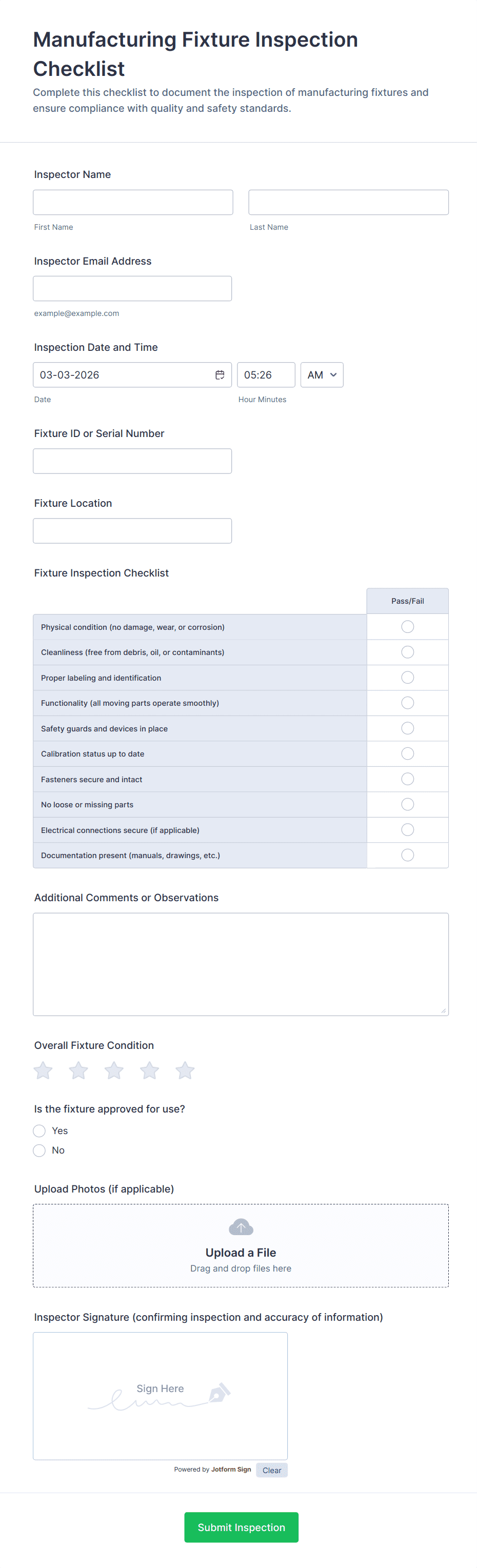 A manufacturing form is a digital or paper-based document used to collect, track, and manage data related to production, quality control, maintenance, inventory, and safety within a manufacturing environment.