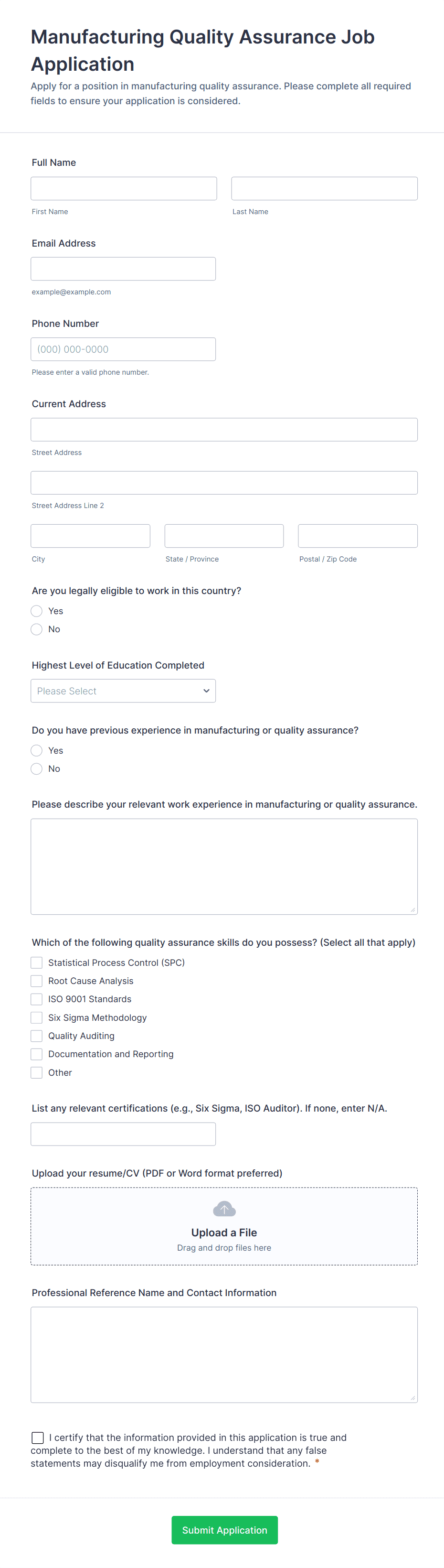 Generic Job Application Form
