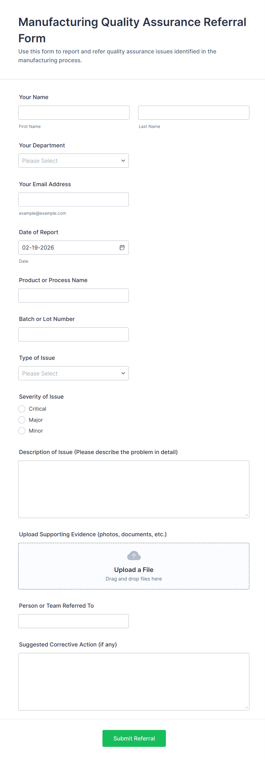 A manufacturing form is a digital or paper-based document used to collect, track, and manage data related to production, quality control, maintenance, inventory, and safety within a manufacturing environment.