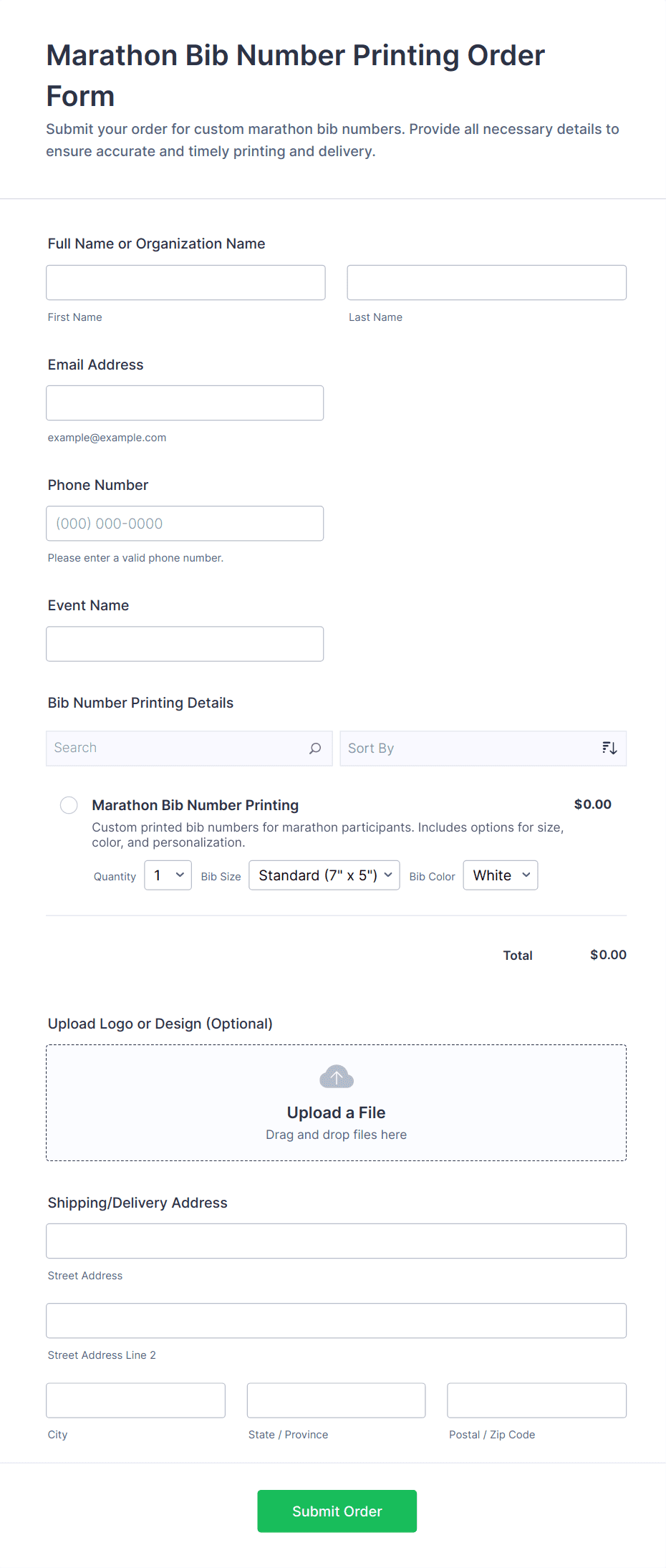 Custom Simple Order Form