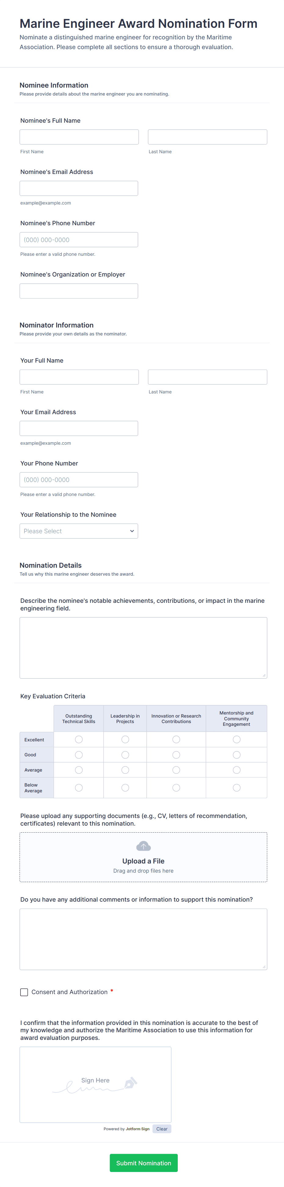 Creating a nomination form with Jotform helps you collect strong, comparable nominations while making review easier for committees.