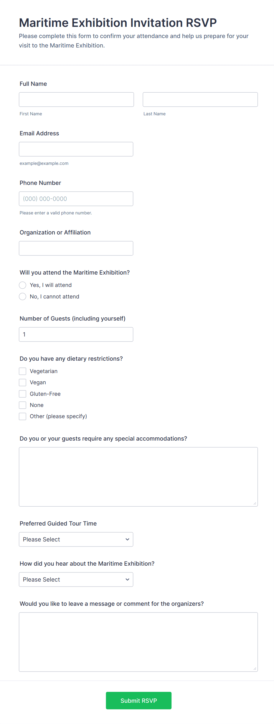 • For formal events (e.g., weddings), forms may include fields for meal choices, plus-ones, and personalized messages.