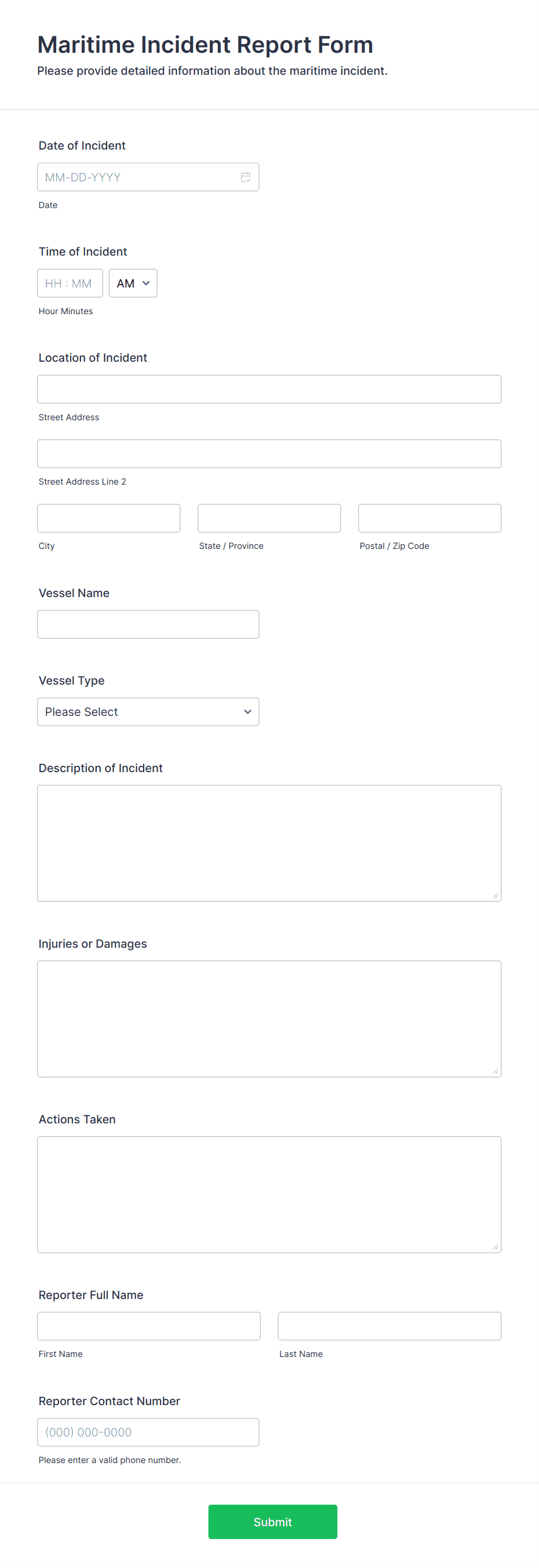 3. What information should be included in an incident report form?
