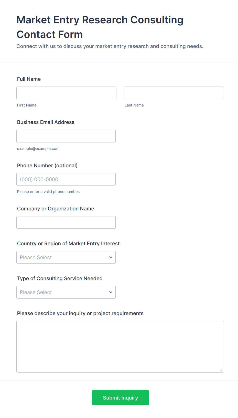 • Client Intake Forms: Focus on collecting contact details, business background, and initial goals.