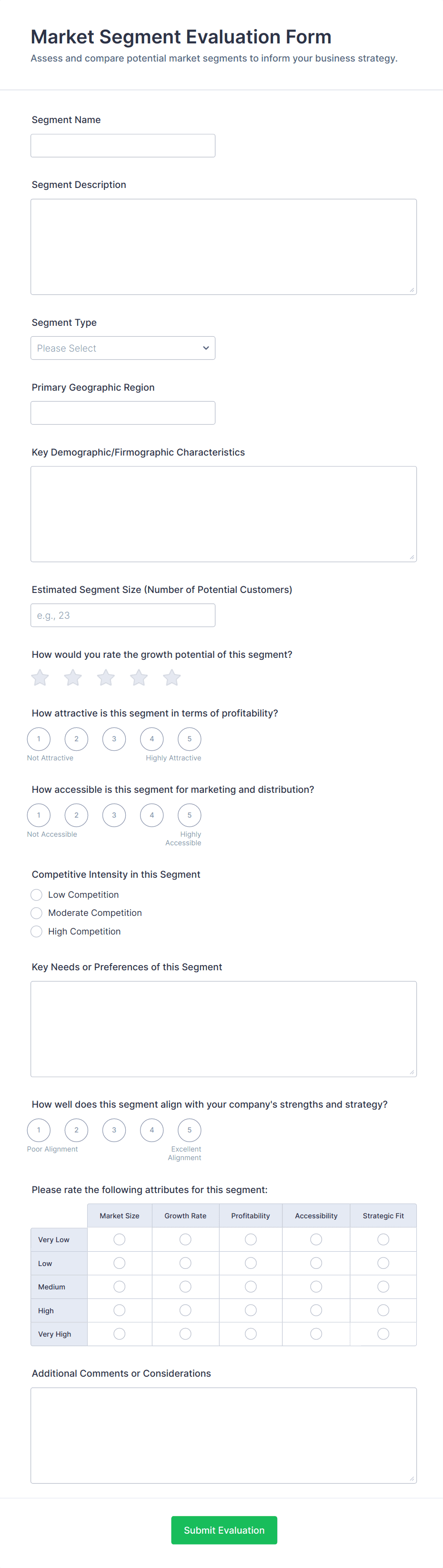 • Market Research Surveys: Incorporate demographic questions, purchasing behavior, and competitor analysis.