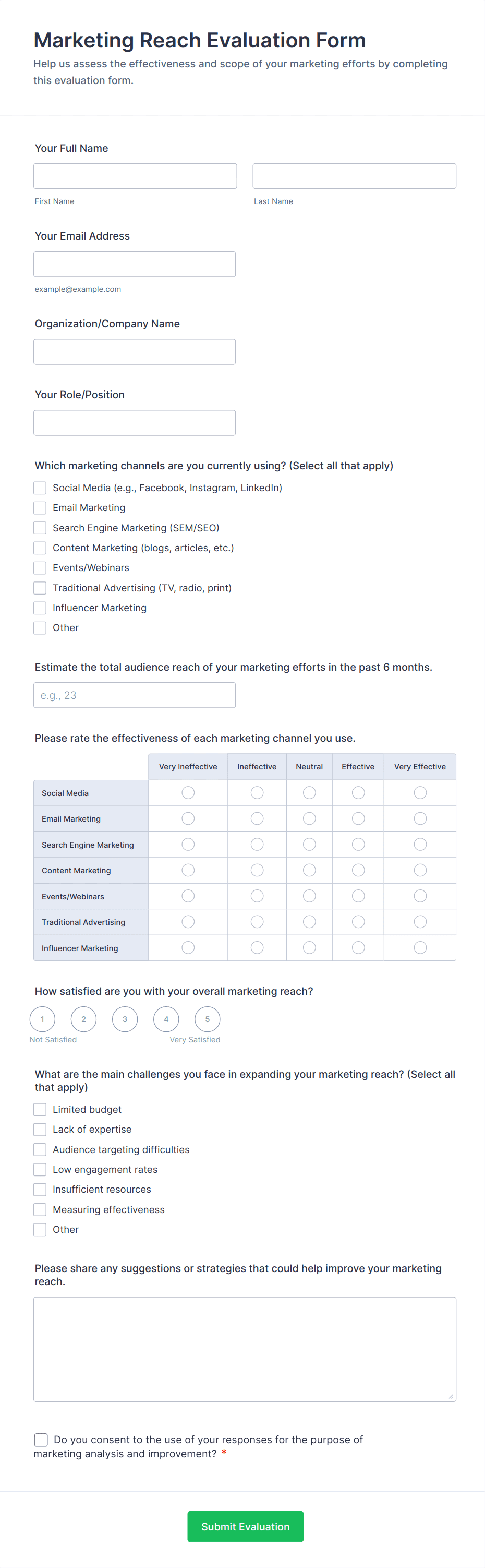 • Market Research Surveys: Incorporate demographic questions, purchasing behavior, and competitor analysis.