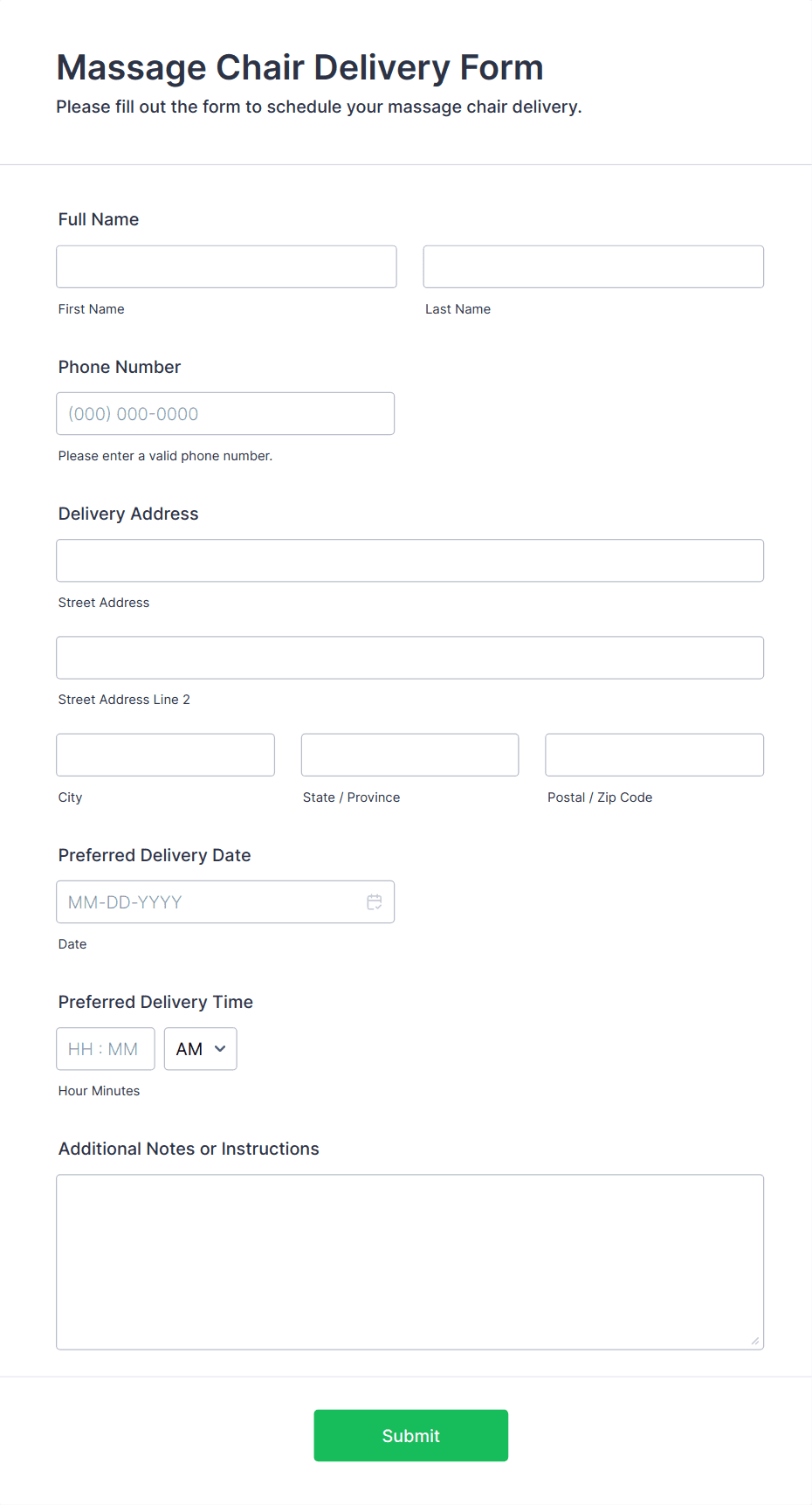 • For service orders, include fields like date/time pickers, dropdowns for service types, and text fields for special instructions.