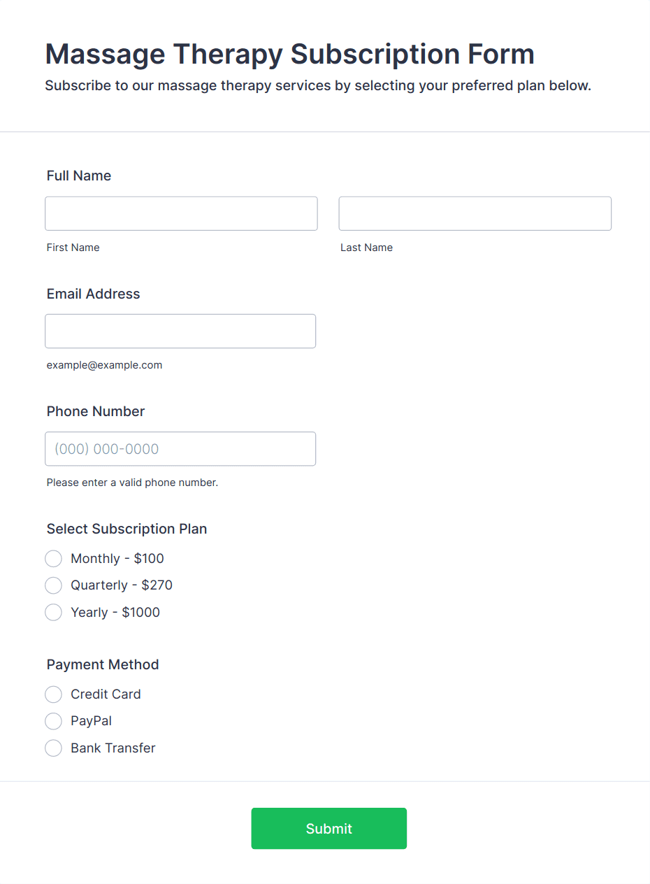 - Membership Sign-Up: Typically asks for contact details, membership type, and recurring payment setup.
