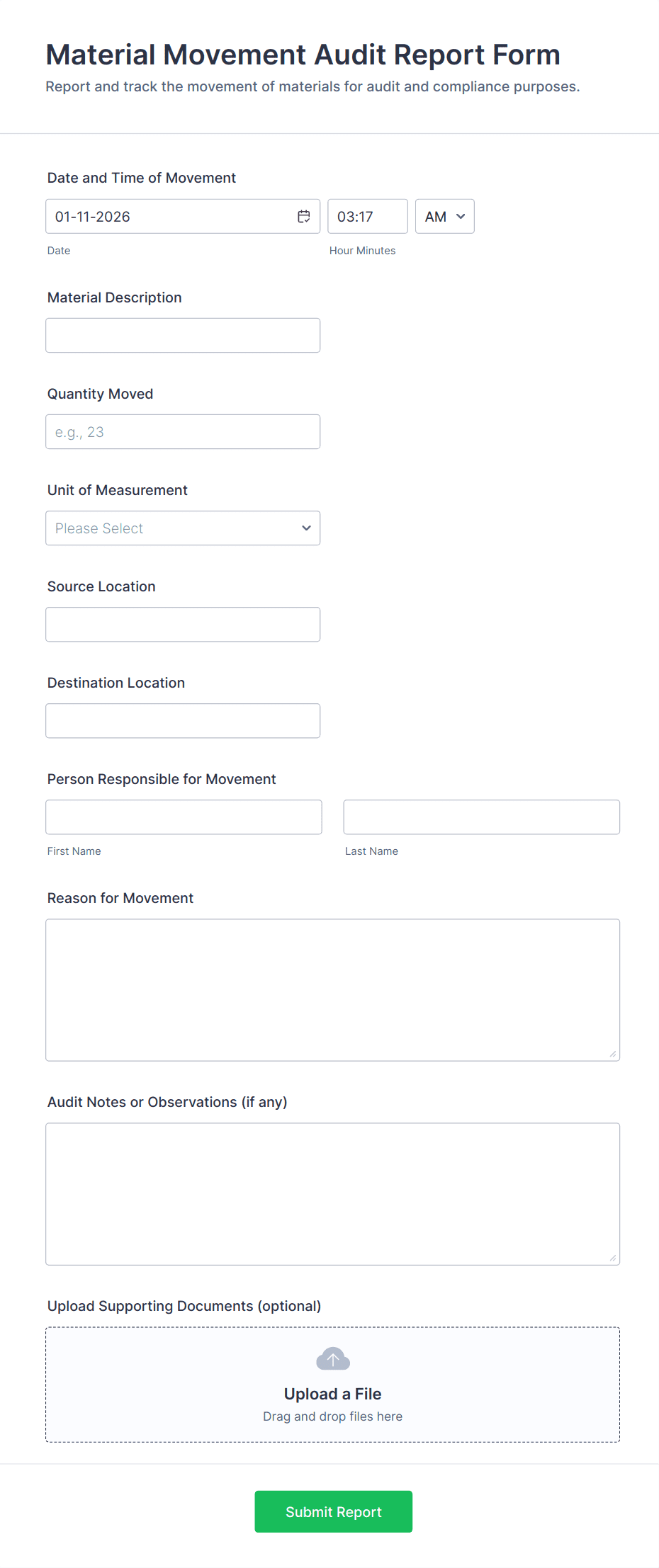 A manufacturing form is a digital or paper-based document used to collect, track, and manage data related to production, quality control, maintenance, inventory, and safety within a manufacturing environment.
