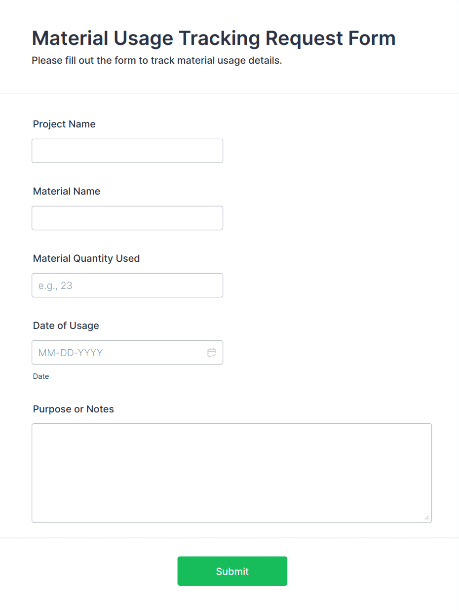 Manufacturing forms are online forms used to collect manufacturing information like product and supply orders, inventory reports, feedback, applications, and more. With these ready-made Manufacturing Forms from Jotform, you can save time and paper by switching from messy paper forms to efficient only forms you can fill out on any device.