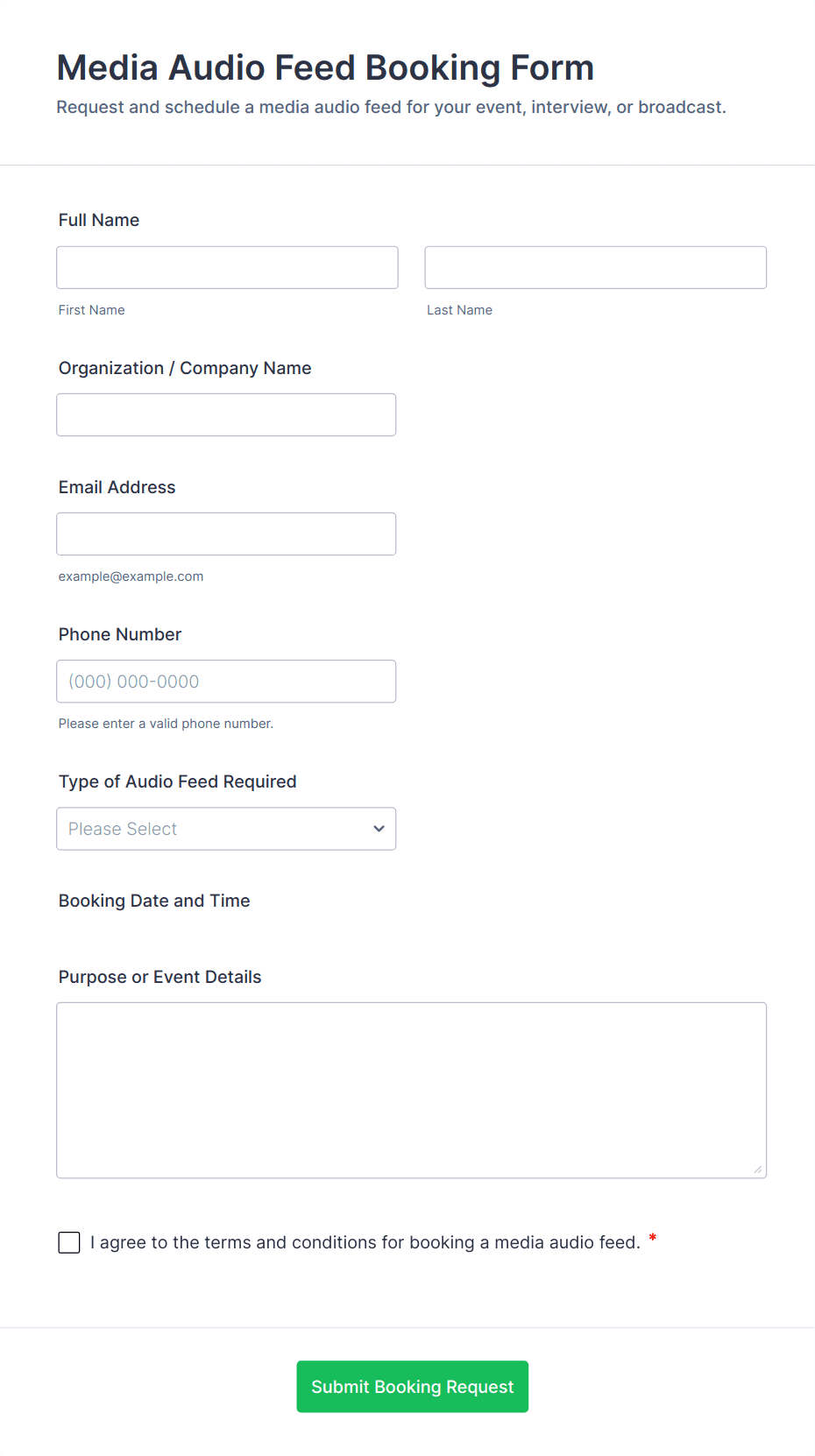 Event Booking Forms are specialized online forms designed to streamline the process of reserving spots, tickets, or services for various events. Whether you’re organizing a conference, workshop, concert, sports tournament, or private party, these forms help collect essential attendee information, manage RSVPs, and process payments or deposits. Event organizers, venues, and service providers use event booking forms to simplify registration, track attendance, and ensure a smooth experience for both hosts and guests. The forms can be tailored to suit different event types, from small gatherings to large-scale public events, making them a versatile tool for anyone managing bookings.