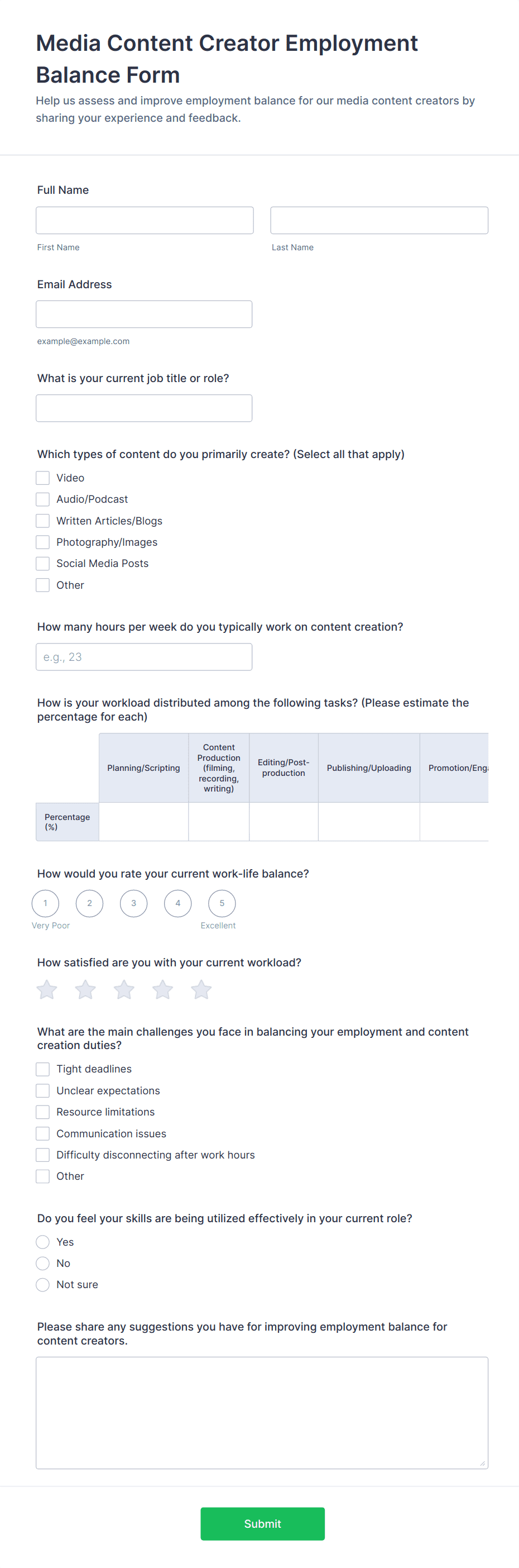 - Determine who will fill out the form (candidates, employees, managers) and what information you need to collect.