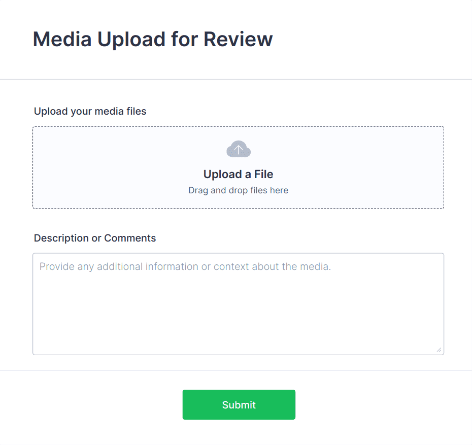 File Upload Forms serve a broad spectrum of industries and purposes, offering tailored solutions for various file collection needs. Here’s how they address different scenarios: