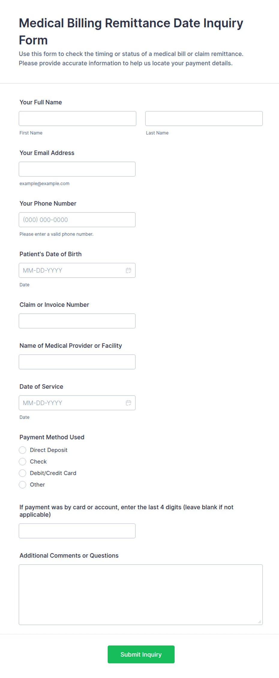 3. What information should be included in an inquiry form?