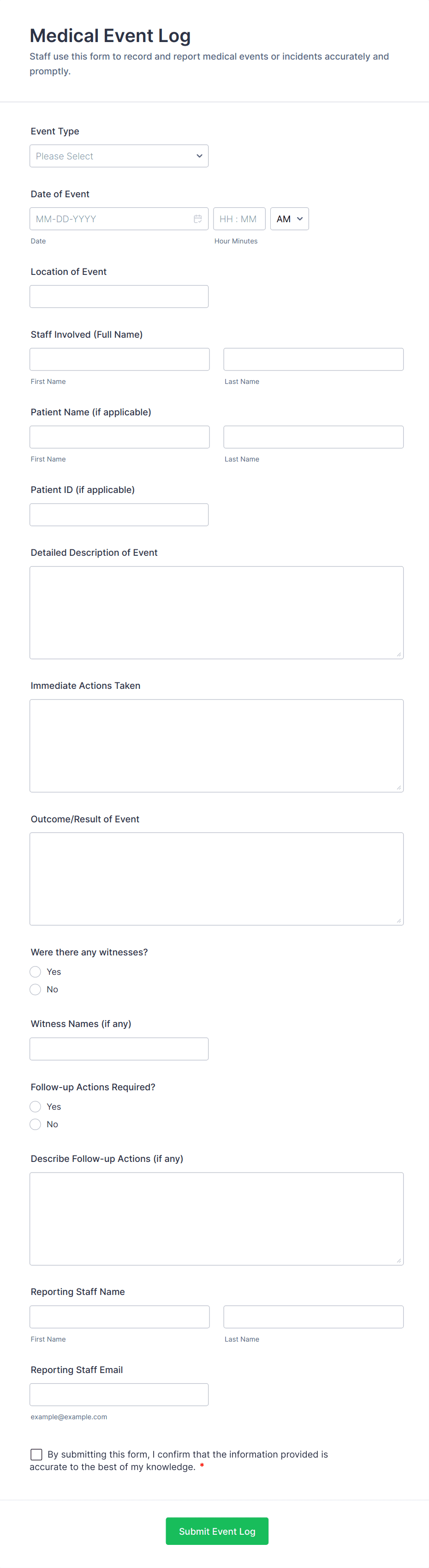 General Incident Report Form Template helps collect witness and incident details after an accident in an organized, easy-to-share online format.