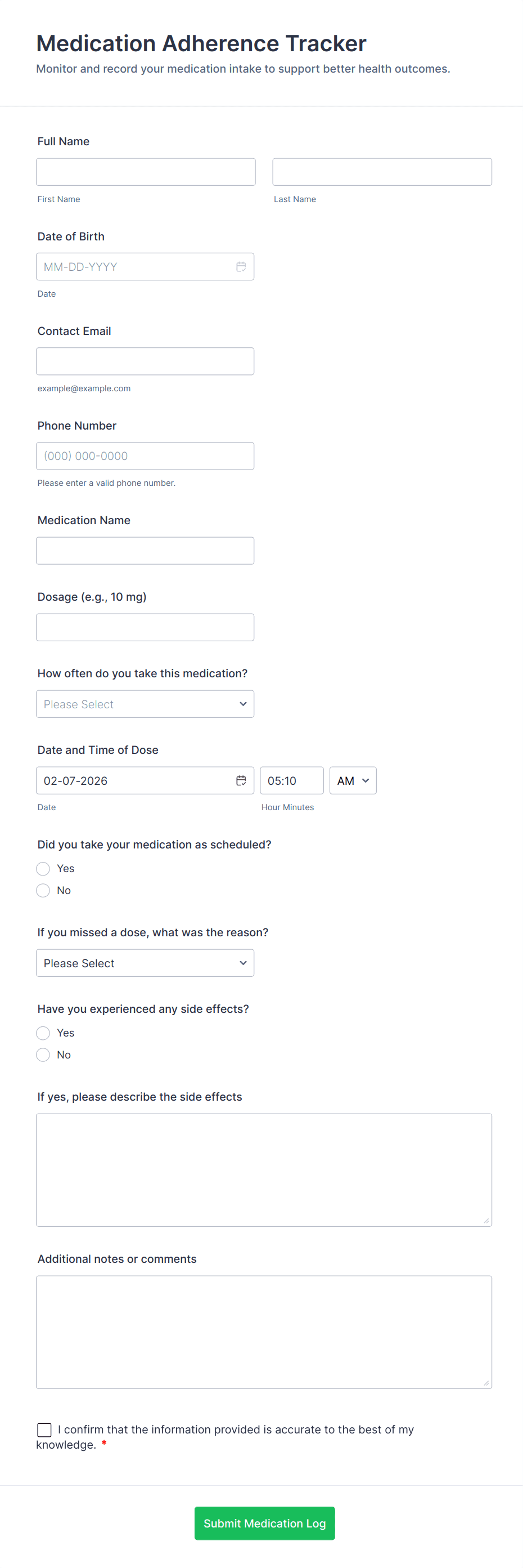 - Embed the form on a website or patient portal for easy access.