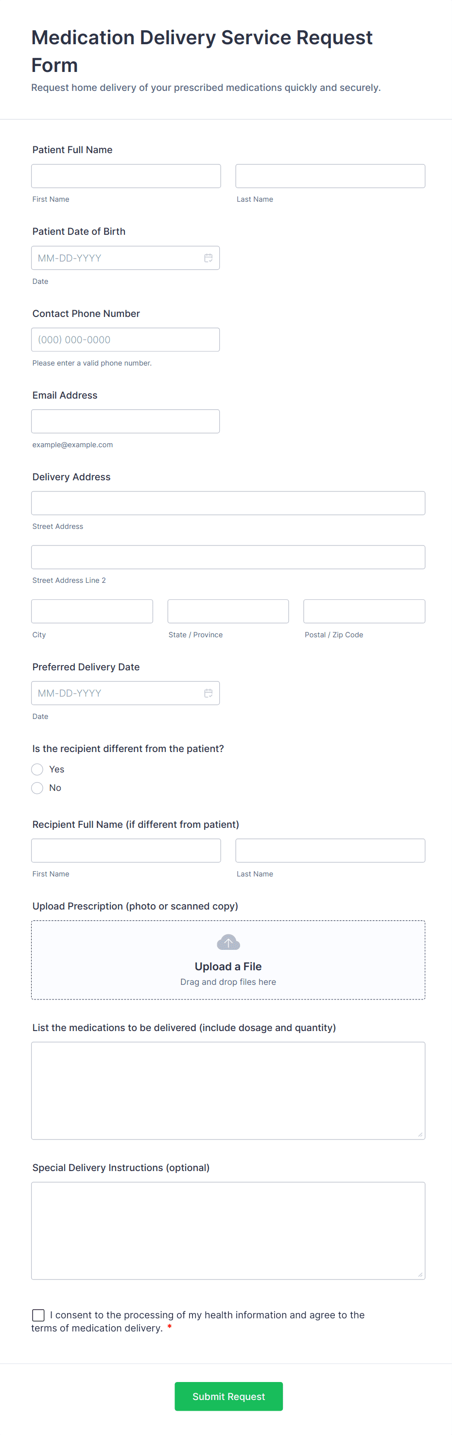 • Medical delivery forms might include compliance checkboxes and temperature logs.