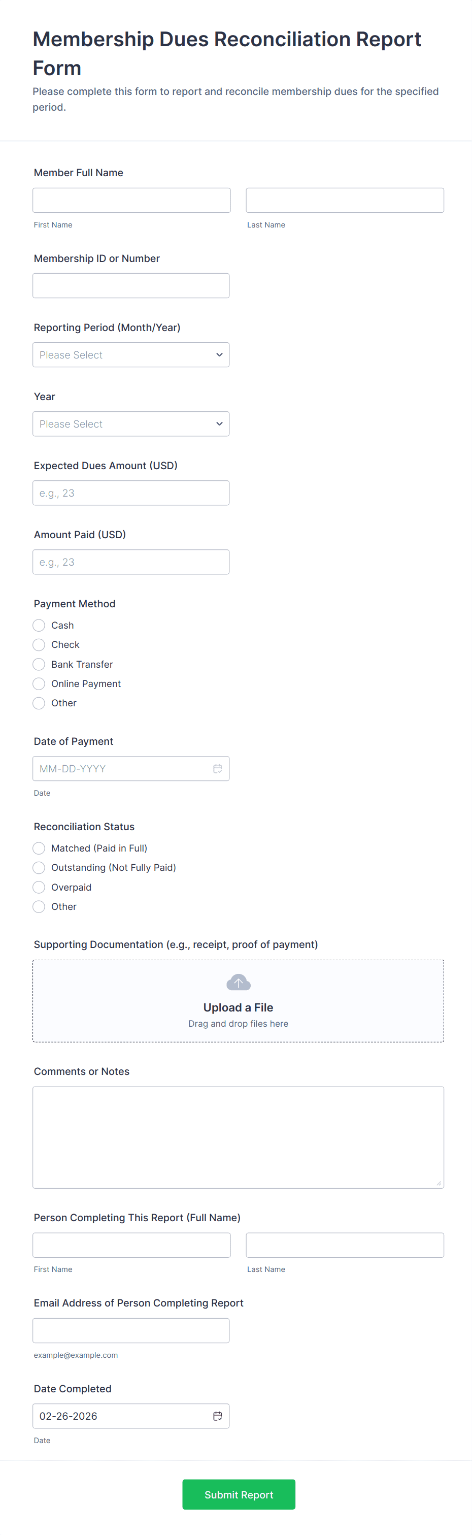• For business reports: Include fields for dates, metrics, comments, and file uploads.